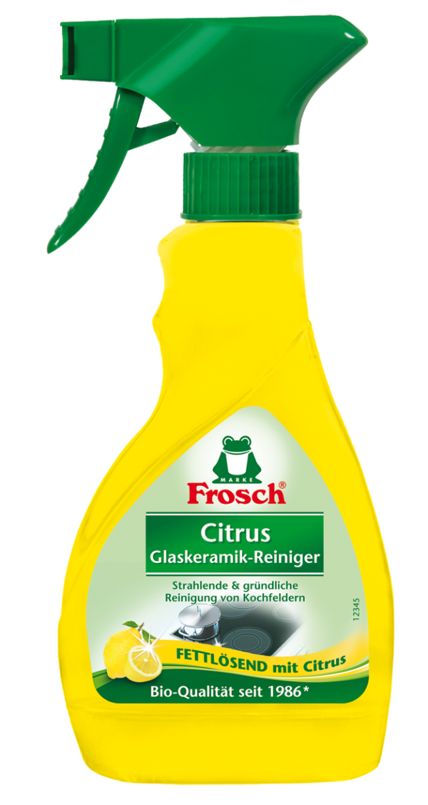 Efektīvi noņem visu veidu netīrumus no indukcijas plīts un stikla keramikas plīts virsmām. Jaudīga formula ar citronu nodrošina efektīvu tīrīšanu un atstāj svaigu citronu smaržu. Lietošana: pagrieziet smidzinātāja uzgali, lai atvērtu. Pabīdiet sietu, lai ieslēgtu smidzināšanas funkciju. Smidziniet uz virsmas un noberziet ar mitru drāniņu. Ražots Vācijā.