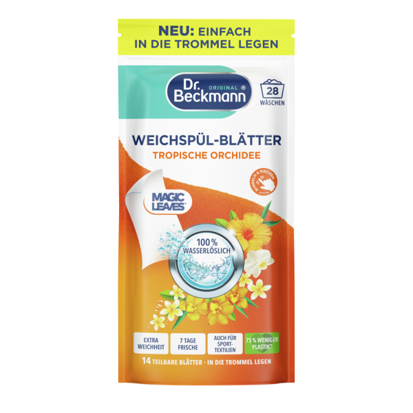 Piešķir apģērbam maigumu un patīkamu atsvaidzinošu aromātu. Lapelīši šķīst ūdenī, viegli lietojami un dozējami, bez krāsvielām un konservantiem. Piemērots visai veļai, izņemot vilnu un zīdu. Saglabā sporta apģērba elpojošās īpašības un dvieļu mitruma absorbciju. Lietošana: ½ lapelīša ievietojiet mazgāšanas mašīnas tukšajā bubnā. Ražots Vācijā.