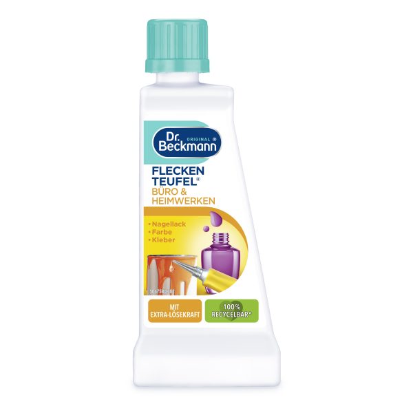 Dr. Beckmann traipu tīrītājs “Birojs un dari pats” ir speciāli izstrādāts sarežģītiem, grūti noņemamiem traipiem, kas rodas birojā vai veicot dažādus dari pats darbus. Šis līdzeklis efektīvi noņem košļājamās gumijas atlikumus, dažāda veida krāsas, piemēram, akrilkrāsas, sienu krāsas. Lietošana: Uzklājiet uz traipa un mazgājiet. Ražots Vācijā.