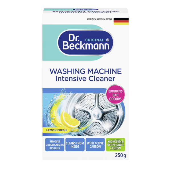 Valo mašiną iš vidaus. Šalina nemalonų kvapą ir nešvarumus. Skalbimo mašinoje gali kauptis plika akimi nematomos purvo dalelės ir skalbimo priemonių likučiai. Laikui bėgant, dėl šių likučių gali pablogėti skalbimo mašinos veikimas. Dr. Beckmann skalbimo mašinų valiklis sukurtas specialiai skalbimo mašinos vidui (būgnui, žarnoms, kaitinimo elementams ir kitoms sunkiai pasiekiamoms dalims) valyti. Tik švarioje skalbimo mašinoje išplauti skalbiniai yra švarūs ir gaivaus kvapo. Jūsų skalbimo mašinai apsaugoti ir prižiūrėti rekomenduojame naudoti priemonę reguliariai (kas 2–3 mėnesius, priklausomai nuo to, kaip dažnai mašina yra naudojama). Naudojimas: supilkite pakelio turinį (250 g) tiesiai į skalbimo mašinos būgną, paleiskite pagrindinį mašinos ciklą (mažiausiai 60 °C) be jokių skalbimo priemonių. Nenaudokite pirminio skalbimo programos, po šios valymo procedūros galite vėl skalbti mašinoje kaip įprastai. Sudėtis: 15% arba daugiau, bet mažiau kaip 30% deguonies pagrindo balinimo priemonių, mažiau kaip 5 % zeolitų, kvapai, Hexyl Cinnamal. Pavojinga! Smarkiai pažeidžia akis. Jei reikalinga gydytojo konsultacija, su savimi turėkite produkto talpyklą ar jo etiketę. Laikyti vaikams neprieinamoje vietoje. Mūvėti akių apsaugos priemones, naudoti veido apsaugos priemones. PATEKUS Į AKIS: atsargiai plauti vandeniu kelias minutes. Išimti kontaktinius lęšius, jeigu jie yra ir jeigu lengvai galima tai padaryti. Toliau plauti akis. Nedelsiant skambinti į APSINUODIJIMŲ KONTROLĖS IR INFORMACIJOS BIURĄ, kreiptis į gydytoją. Produkte yra Dinatrio karbonatas, junginys su vandenilio peroksidu (2:3); Silicio rūgštis, natrio druska.